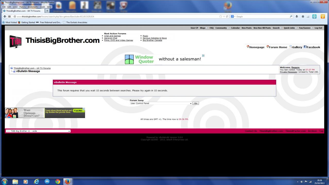 "The Forum requires that you wait 15 Seconds between searches" I'm not searching just switching to a different page!