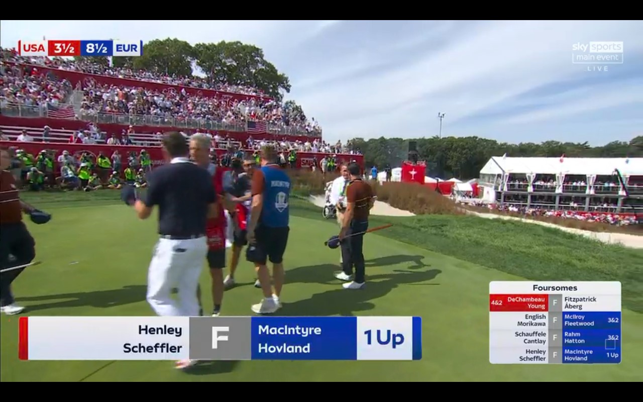 Apparently the yanks are favourites to win 8 out of the 12 singles with two drawn matches ( Rory is one ) and Europe expected to win just 2