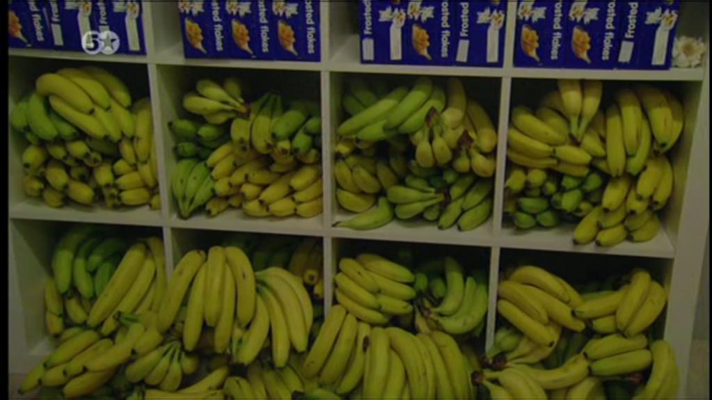500 bananas. Looks like the Tesco fruit counter. Quite a lot of packs of frosted flakes too.
