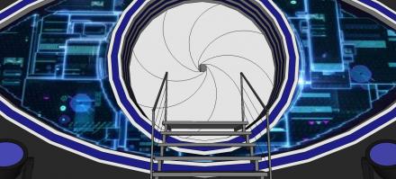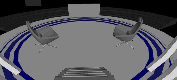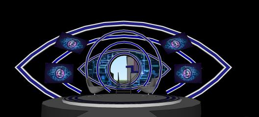 Inside the eye, there is a larger set of stairs down to a larger interview stage that has 4 TV screens and large eye shaped lights... In a way this resembles the Australian Big Brother Auditorium.