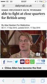 This title should have been given to a woman who has earned it doing the same training as all her male peers.Just as the ridiculous idea of putting post op transsexuals competing against women in the olympics is unfair.So is this. I'm thinking that this maybe just The Suns spin on it though to make a story.In 2018 they'll now have to have the headline 'First real woman on the frontline'. Imo. |