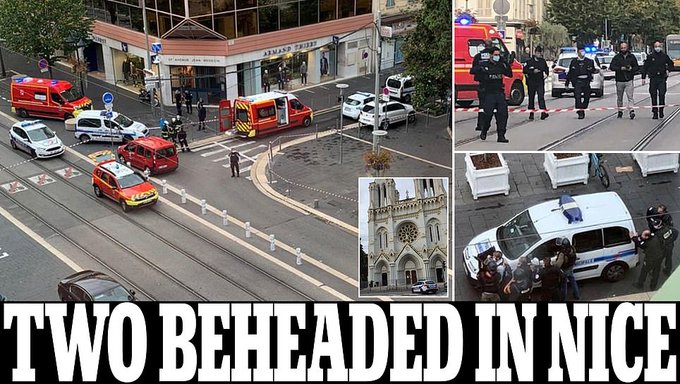 [Two people have been killed in a suspected terror attack in Nice, police say.