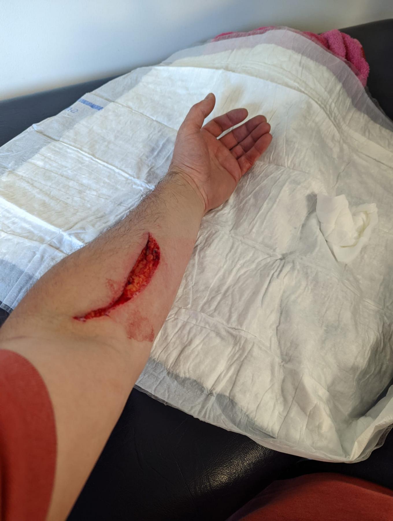 ![]() was pruning a small tree with my new Felco secateurs ![]() looked at my had and a wasp was on it, went to swipe it away and drew the blade right down the inside of my arm and it opened up like a burst cushion. Luckily i can walk to the hosp so i wrapped a towel around it and went. They put like 14 injections in my arm to numb it and then put in 14 stitches. So annoyed with myself dont open if squemish Spoiler: |