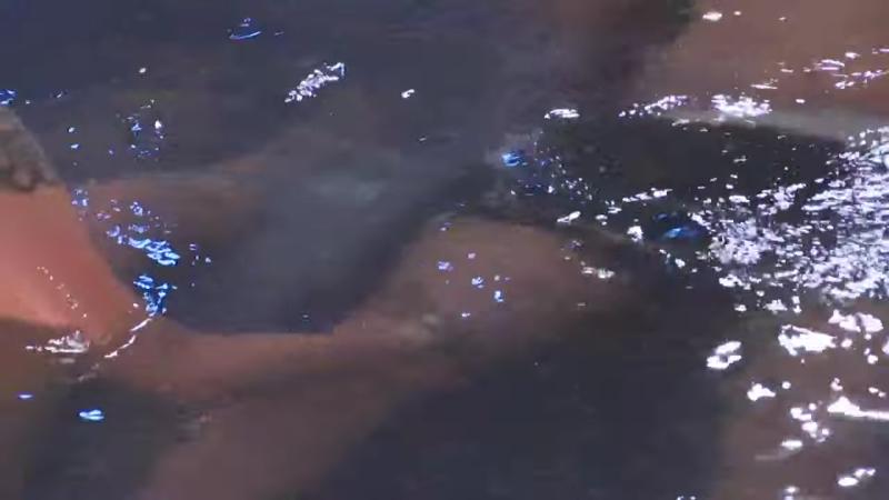 Just a friendly platonic rub of the inner thigh alone in a hot tub