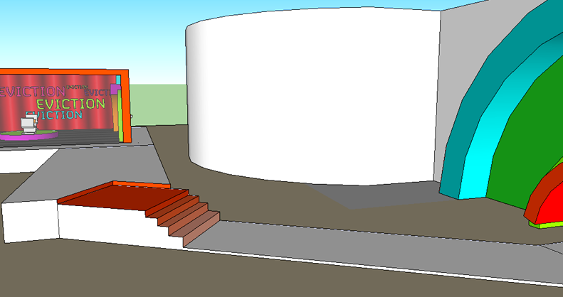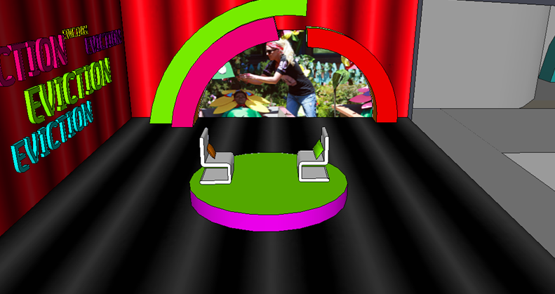 Heres just one example of the trailers: ![]() I won't be doing anymore but I just wanted to show the 'cartoony' abstract style of what the trailers would be like. For the moment though I really want to share some of the house with you! I only started it yesterday but I've done everything except the garden, bedroom and bathroom. I'm going to show the house 'shell' and eviction studio today! The new house shell is longer and curvier. Its not TOO big, but its more higher which also enables for a bigger house height wise. The entrance is on the bottom floor, and the new interview studio is placed outside of the house in a glass box. The studio itself is quite small with just enough area for guests to stand.The glass box is a good idea and one I've always felt would work, as you would see the massive crowd outside but you wouldn't hear them booing or interrupting the interview as much. ![]() ![]() ![]()