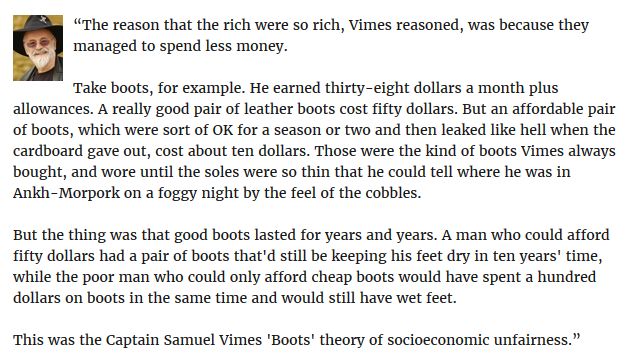 I mostly wear boots rather than shoes or trainers, and boots are generally more expensive. When I was a kid I needed the ankle support from boots, and while I don't need them anymore I prefer it.
