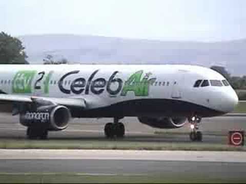 Zeppotron have subchartered an Airbus A321 from Monarch Airlines, registration G-OZBI, which has been repainted into CelebAir colours.