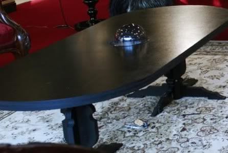 Under the table is funny though. It's like someones car keys or a disused needle or something. Definately not something that's meant to be there. |