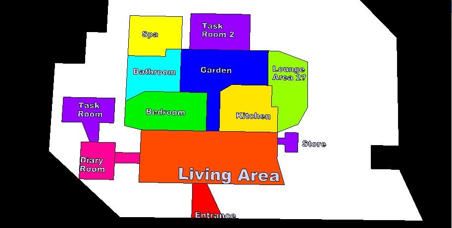 Before i start, The House is made to be Small, horrible and Un-Comfortable. So i hope this fits in with the theme. 1. The Dining Area There is 12 chairs for Housemates to Sit on. However there are 15 Housemates. The Tables can be moved and split at Big Brother's Discretion. 2. The Sofa Area ![]() There are 4 Black Sofas with enough room for every Housemate. There are two white tables and a Plasma Screen. The Sofas are hard but have padded parts to them. Extra Pictures ![]()