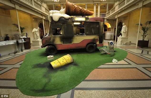The covert graffiti artist snuck into Bristol's City Museum and Art Gallery and replaced many of the artefacts on display there with 100 pieces of his own work, including a burnt-out ice-cream van.