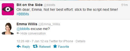 One of the digital team criticised her on twitter, probably the blonde one at the end of BBBOTs: