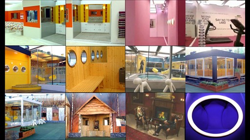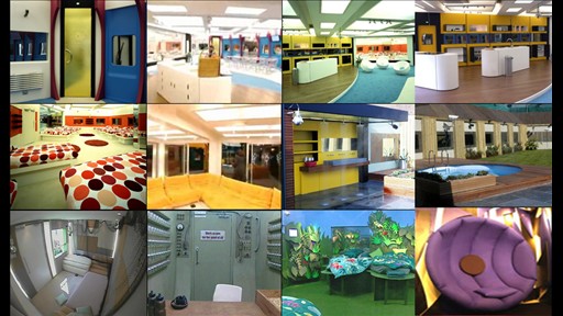 'E4/Banksy' theme, designed by Patrick Watson. Elstree compound. Secret room(s): There were some staris that lead to an upstairs room John used for a task. Notes: The space used for the Half Way House, Australian room and various tasks for BB8 returned for a few more tasks in Celebrity Hijack. The pool from BB8 was replaced with a hot tub. The bedroom was completely different from the one in BB8. It also had access to a gym. The bath tub was moved to its appropriate place in the bathroom whilst the fridge and oven were moved in to the kitchen. The diary room chair from BB8 returned but was lit with purple lighting whilst there were purple paint splodges round the living room. Big Brother 9 (2008)/Celebrity Big Brother 6 (2009) 'Shattered' theme, designed by Patrick Watson. Elstree compound. Notes: This was the first house to have an offical task room. This house was divided via a heaven/hell divide similar to BB3's rich/poor twist. The bathroom, luxury bedroom and most of the garden (including pool) belonged to the heaven side, whereas the kitchen, B Block bedroom and jail end of the garden were on the hell side. For CBB6 2 more bedrooms were installed. One for LaToya Jackson coming from the B Block bedroom, and one for the Head of House by the luxury bedroom. The blue bathroom was repainted purple for CBB6. The BB9 garden was painted blues and yellows for CBB6 whilst the pool was replaced with carousel horses, the jail was made larger, and the nomination pod used in BB9 was replaced with a heated seating area. The overall series theme of CBB6 was 'celebrity' so the CBB6 house added a few stars to the carpets and wall pannels. Big Brother 10 (2009) 'Basic' theme, designed by Patrick Watson. Elstree compound. Notes: This house was sh!t. But I'll let you decide. For the first time every area in the house was contained within its own respective room e.g. the kitchen was in its own room, the dining room was in its very own room and the living area was in its own room. Supposedly several features and rooms were symbolic or representative of previous BB series which would fit in with the BB10 thumb print/identity logo. Perhaps the fact it shares an almost identical layout to BB9's house is actually a stroke of genius by mimicking what BB2 was to BB1? Or perhaps it was just credit crunched and/or lazy. You decide.