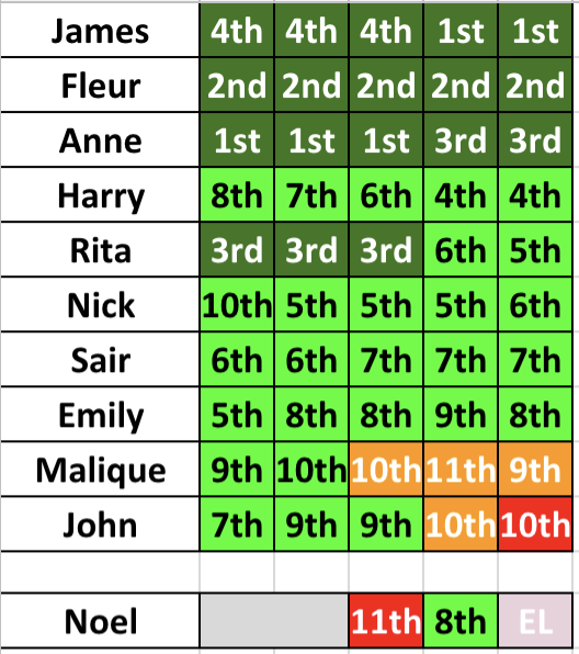 Ugh what a great cast if it isn't Nick (unlikely tho), Anne or James that go tomorrow I will fume