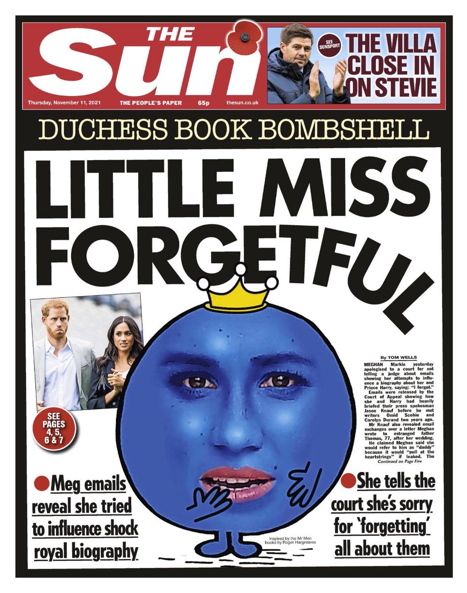 Duchess of Sussex apologises to court for forgetting she authorised senior aide to brief authors of her biography The Duchess of Sussex has apologised to the British court for failing to remember that she authorised a senior aide to brief the authors of her biography. The Duchess, who has previously insisted through lawyers that there was no collaboration with the authors of Finding Freedom, said she had forgotten email exchanges with her then-press secretary Jason Knauf about a meeting. In a witness statement to the Court of Appeal, Mr Knauf said the Duke and Duchess of Sussex had "authorised specific cooperation in writing" in December 2018. ...... ......................................... She ‘forgot’. Of course you did Meghan. ![]() She just can't help telling lie after lie and when she tells lies to the court it goes to a new level. |