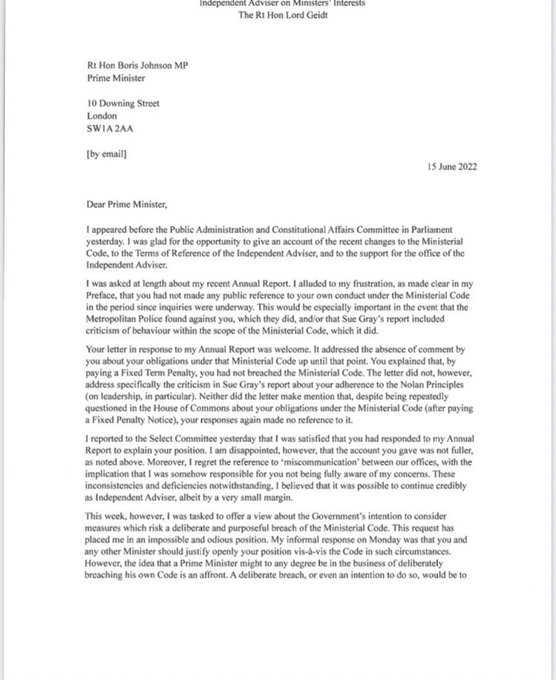 Was Live on SkyNewsHD [Lord Geidt had demanded that PM explain himself over 'partygate', saying there were 'legitimate' questions on if he broke ministerial code ] Was to be Expected https://news.sky.com/story/prime-min...signs-12634638 Last edited by arista; 15-06-2022 at 06:19 PM. |