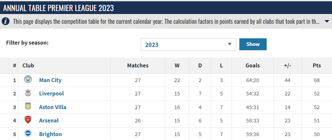 This is wild. We only started trying in April. Obiously before today, so Arsenal go a point ahead of us, but jeez.