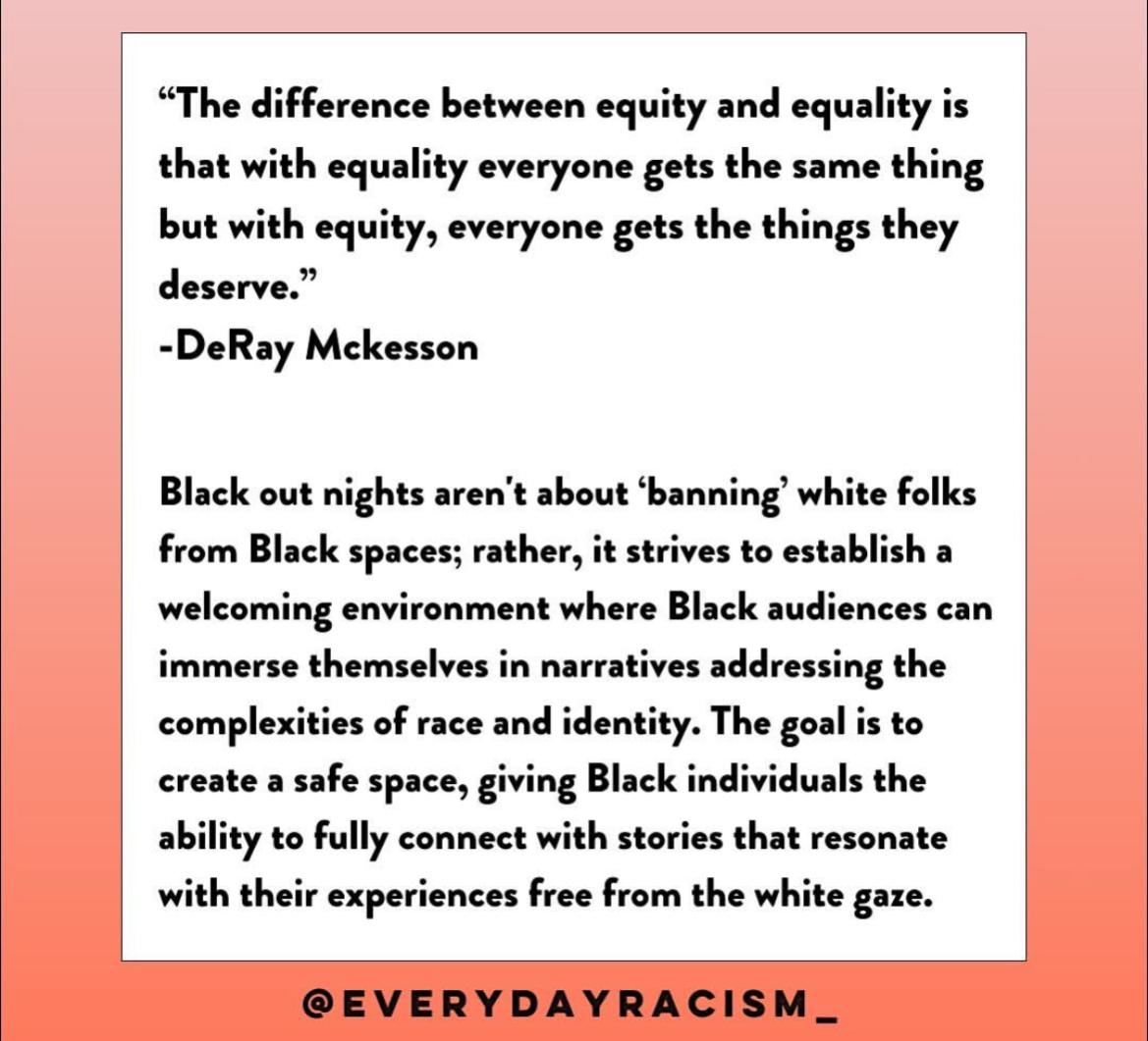 I actually kinda take Livia’s point about casting the right actor for the part when skin colour would make a realistic difference but I still can’t not be alright with this particular black-only night.