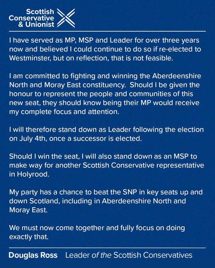 ![]() Today I announced that I will be standing down as leader of the Scottish Conservatives after the General Election. You can read my statement below: |