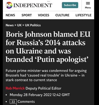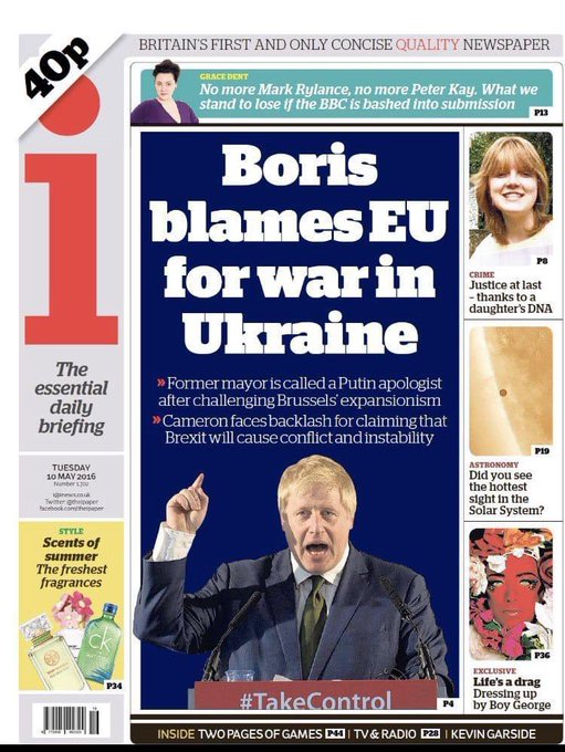 to Print out that old 'i' news paper big "Boris Blames EU on War in Ukraine" The headline Last edited by arista; 24-06-2024 at 11:31 AM. |