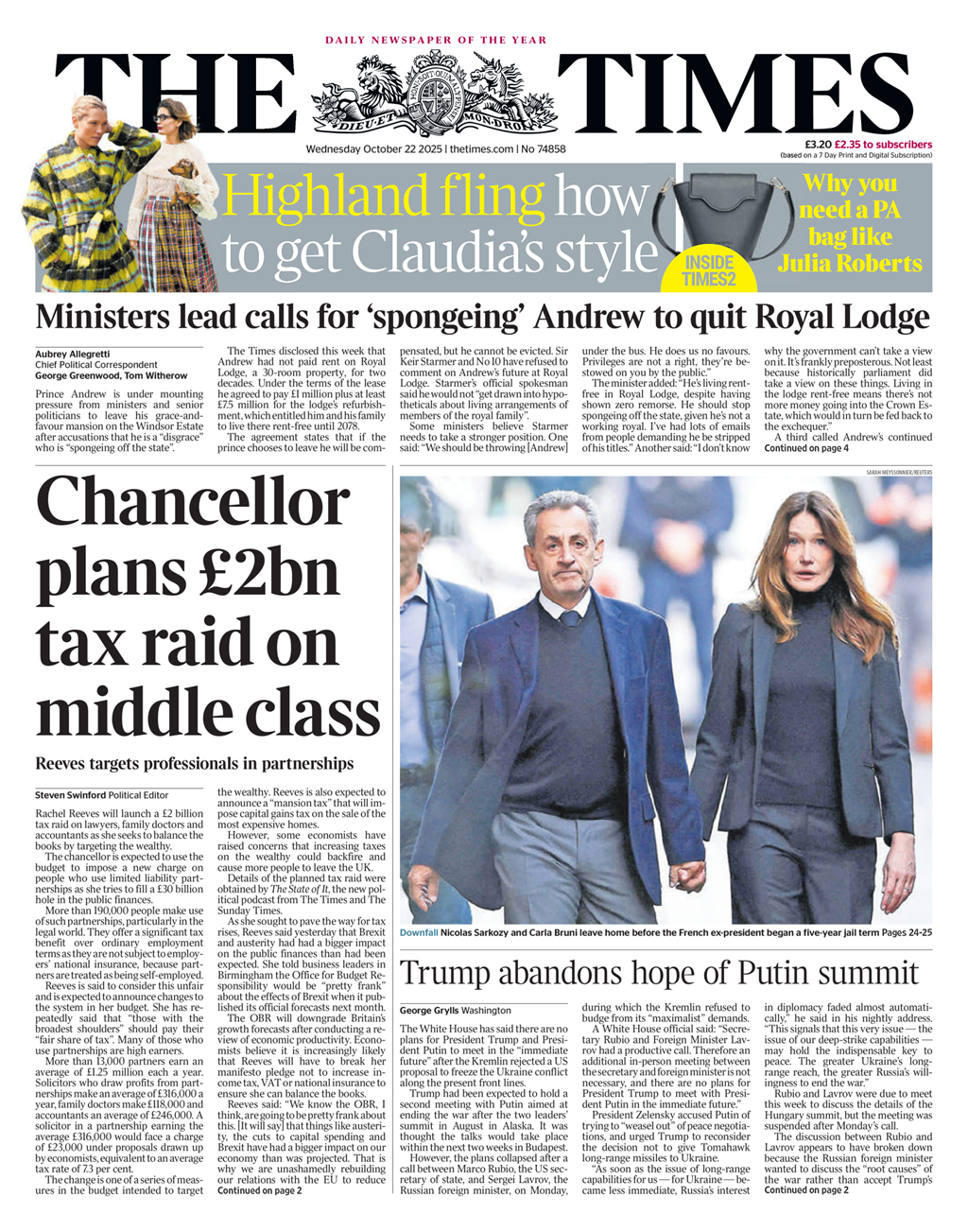 [The Times claims Prince Andrew has not paid rent since 2003.] ![]() |