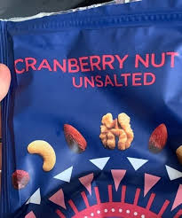 sometimes having this instead of potato crisps, which contains dried cranberries, walnuts, almonds, cashews, and unsalted which always is good for you