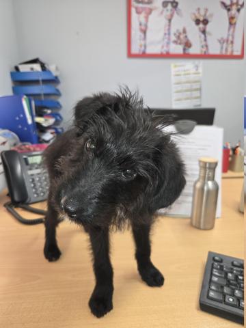 He looks a bit unsure in the first photo, got his paws right under the table in the second ..or over the table