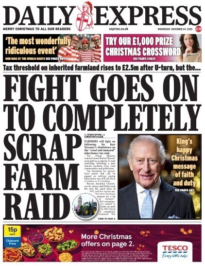 [Farmers will fight on to completely ban inheritance tax on farms, after Sir Keir Starmer significantly increased the threshold, the Daily Express writes.] The Lib Dems back that