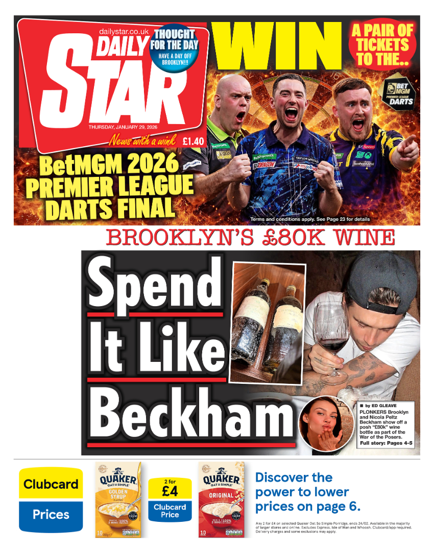 [The Daily Star reports on an expensive bottle of wine shared by Brooklyn Beckham and Nicola Peltz.]