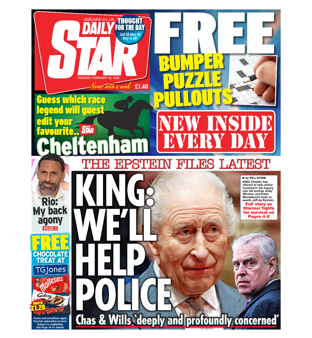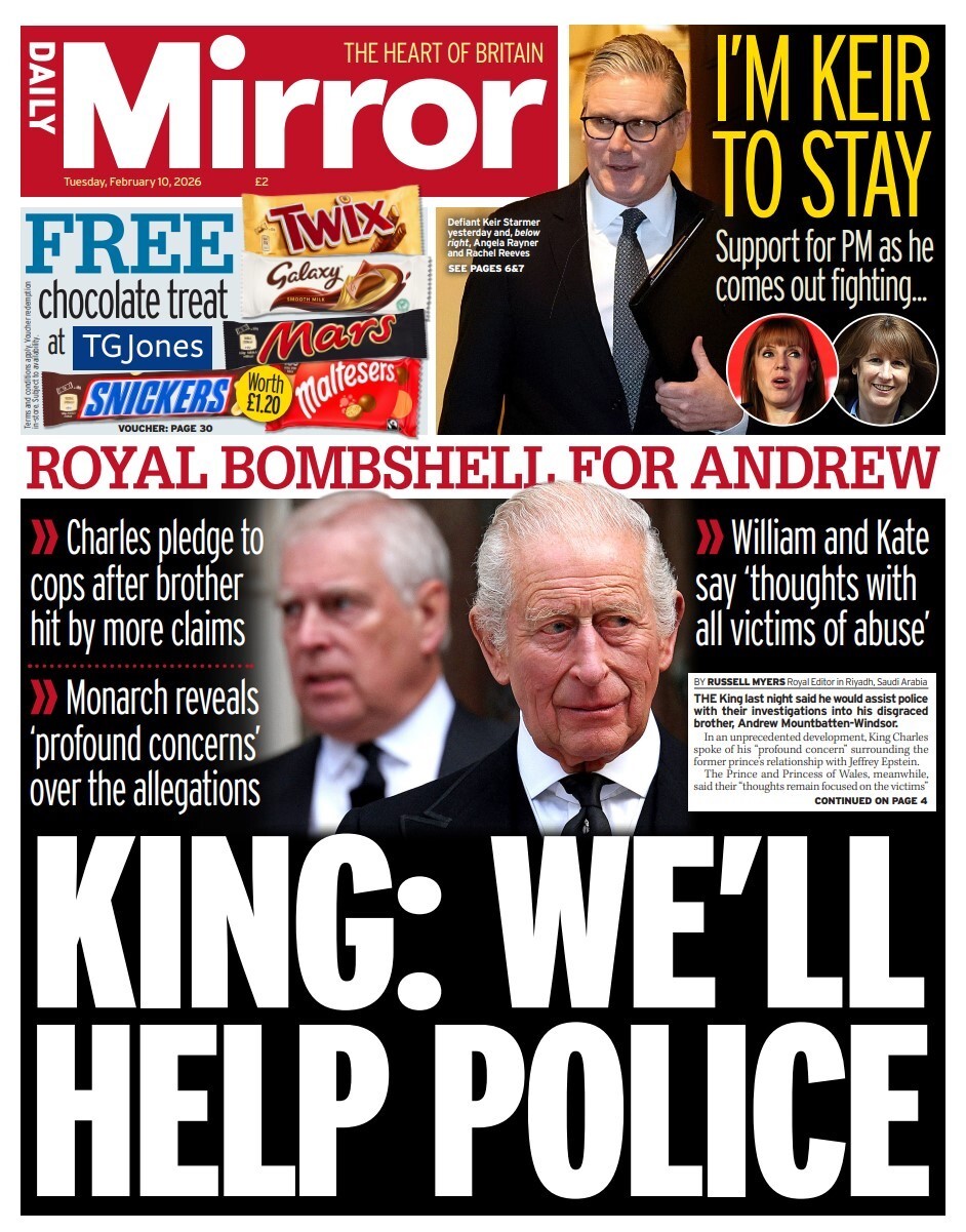 [Latest release of the Jeffrey Epstein files. The paper cites emails that suggest the late sex offender had a private dinner with Andrew Mountbatten-Windsor at Buckingham Palace, accompanied by a young model. Mountbatten-Windsor has consistently denied any wrongdoing in relation to his friendship with Epstein.]