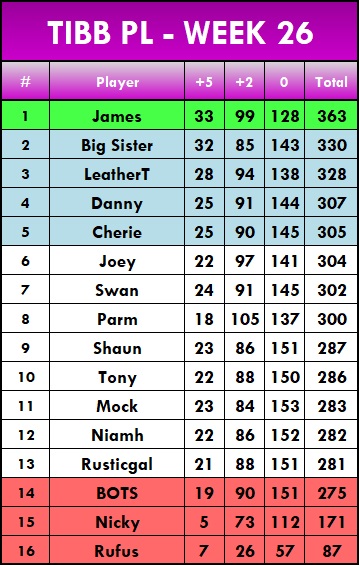 Also adjusted so that Parm's 2 points I missed from Week 22 have been added
