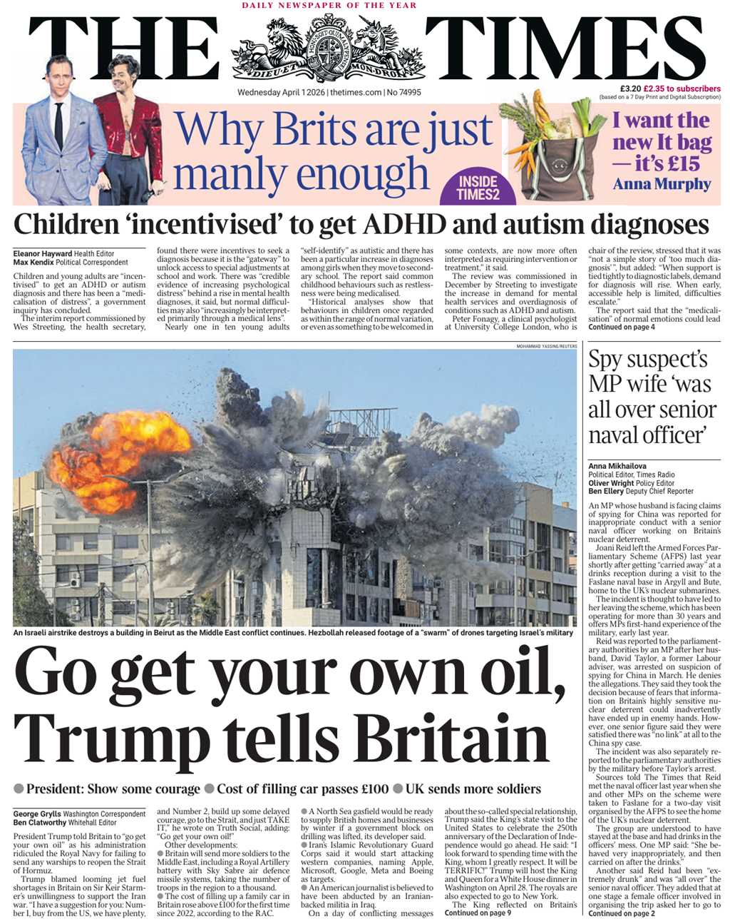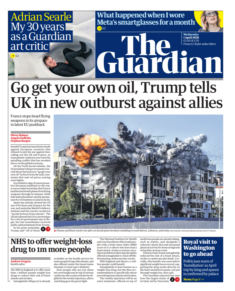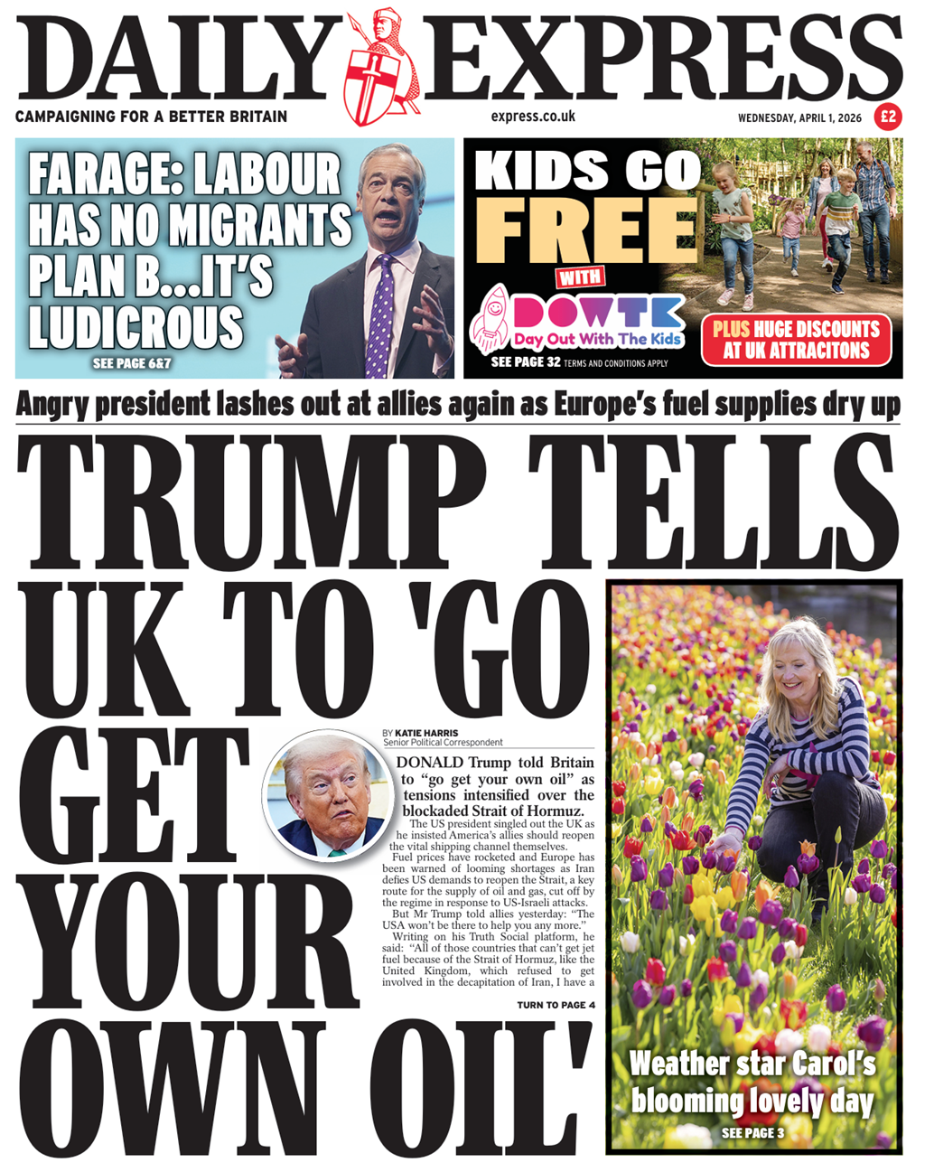 In a post on Truth Social, he writes countries will “have to start learning how to fight for yourself, the U.S.A. won’t be there to help you anymore, just like you weren’t there for us," addressing countries "which refused to get involved in the decapitation of Iran". "Iran has been, essentially, decimated. The hard part is done," the post adds, ending with: “Go get your own oil!” ---------------------------------------------- Thanks for that Donald, run away and hide Last edited by bots; 31-03-2026 at 12:51 PM. |