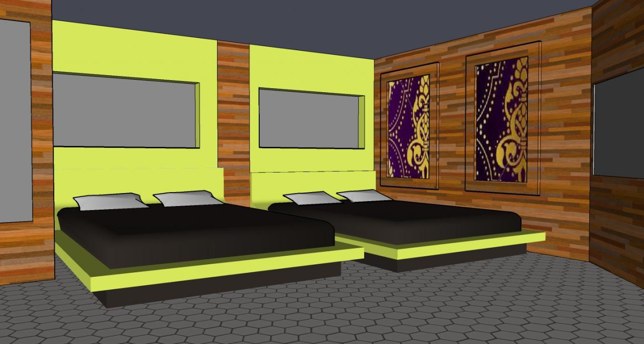 It's soooooo cool it's all kinda cold and stuff, it's looks like the housemates might be uncomfortable sleeping in there but thats good!!!!! nice shape to the room, cool colours too, it's well coool well done!