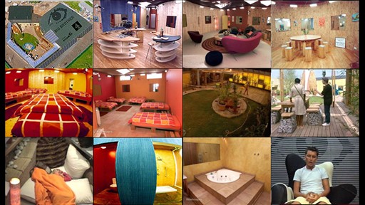 'E4/Banksy' theme, designed by Patrick Watson. Elstree compound. Secret room(s): There were some staris that lead to an upstairs room John used for a task. Notes: The space used for the Half Way House, Australian room and various tasks for BB8 returned for a few more tasks in Celebrity Hijack. The pool from BB8 was replaced with a hot tub. The bedroom was completely different from the one in BB8. It also had access to a gym. The bath tub was moved to its appropriate place in the bathroom whilst the fridge and oven were moved in to the kitchen. The diary room chair from BB8 returned but was lit with purple lighting whilst there were purple paint splodges round the living room. Big Brother 9 (2008)/Celebrity Big Brother 6 (2009) 'Shattered' theme, designed by Patrick Watson. Elstree compound. Notes: This was the first house to have an offical task room. This house was divided via a heaven/hell divide similar to BB3's rich/poor twist. The bathroom, luxury bedroom and most of the garden (including pool) belonged to the heaven side, whereas the kitchen, B Block bedroom and jail end of the garden were on the hell side. For CBB6 2 more bedrooms were installed. One for LaToya Jackson coming from the B Block bedroom, and one for the Head of House by the luxury bedroom. The blue bathroom was repainted purple for CBB6. The BB9 garden was painted blues and yellows for CBB6 whilst the pool was replaced with carousel horses, the jail was made larger, and the nomination pod used in BB9 was replaced with a heated seating area. The overall series theme of CBB6 was 'celebrity' so the CBB6 house added a few stars to the carpets and wall pannels. Big Brother 10 (2009) 'Basic' theme, designed by Patrick Watson. Elstree compound. Notes: This house was sh!t. But I'll let you decide. For the first time every area in the house was contained within its own respective room e.g. the kitchen was in its own room, the dining room was in its very own room and the living area was in its own room. Supposedly several features and rooms were symbolic or representative of previous BB series which would fit in with the BB10 thumb print/identity logo. Perhaps the fact it shares an almost identical layout to BB9's house is actually a stroke of genius by mimicking what BB2 was to BB1? Or perhaps it was just credit crunched and/or lazy. You decide.