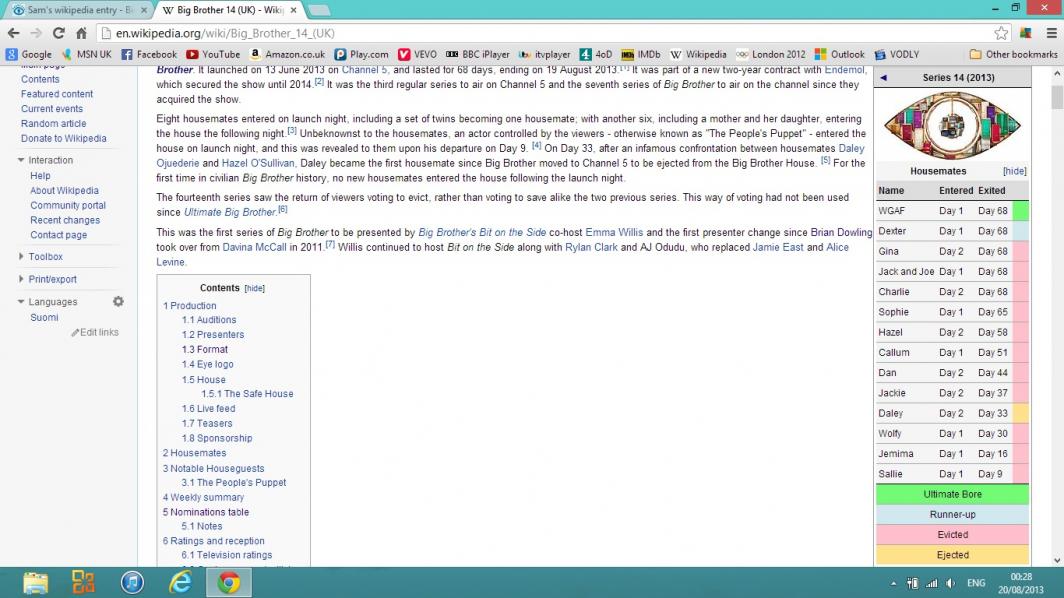 | BB14 Channel 5's Big Brother: Secrets and Lies (aka Big Brother 14) started June 13th 2013 and was won by Sam Evans. Discuss the series and housemates here. |
