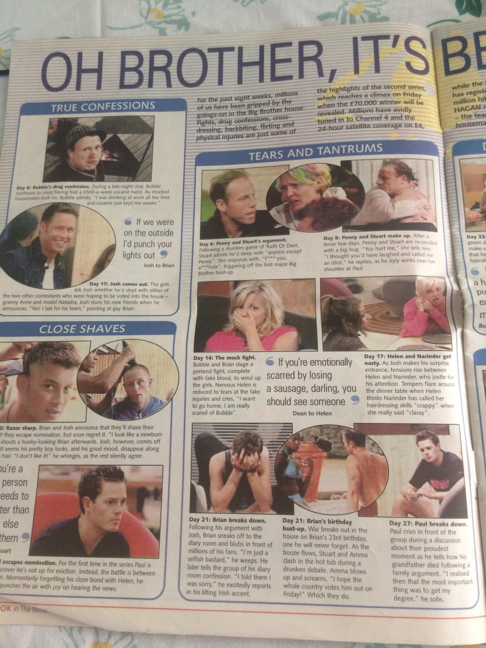 | BB2 Brian Dowling, Helen and Paul, Dean and the rest of the Big Brother 2 housemates from 2001. |