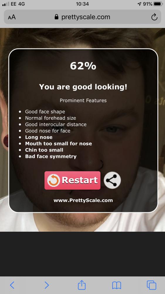 Not them rating your asymmetric facial features as 1% more attractive than my tiny forehead