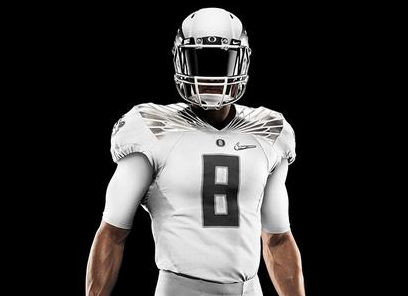 Oregon being the higher seed (Yes they have a playoff this year) got to choose their color (White or whatever they damn well please since they play every game with a different color scheme.) They chose white, this is what they'll be wearing next Monday