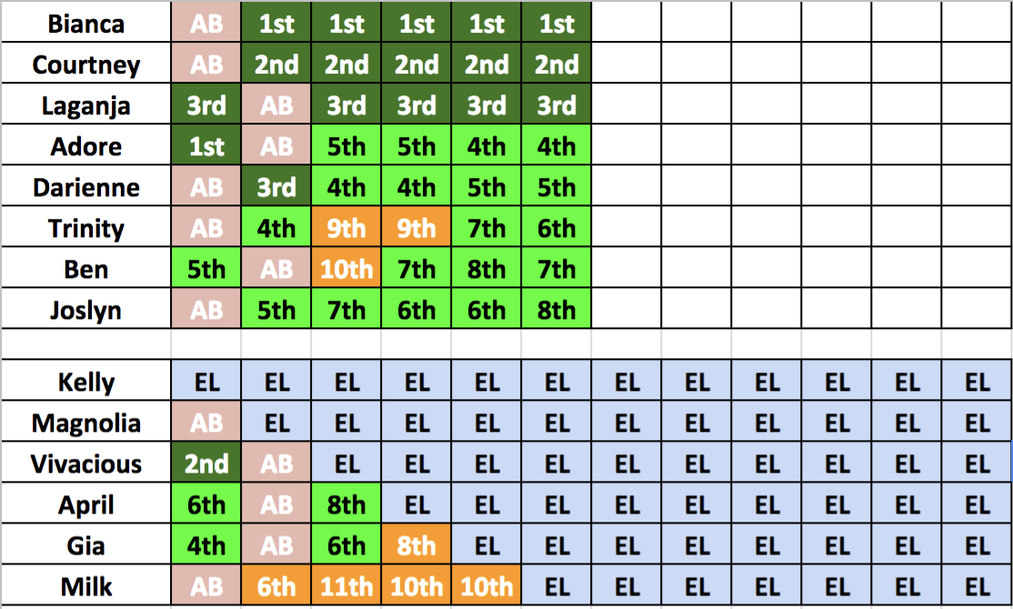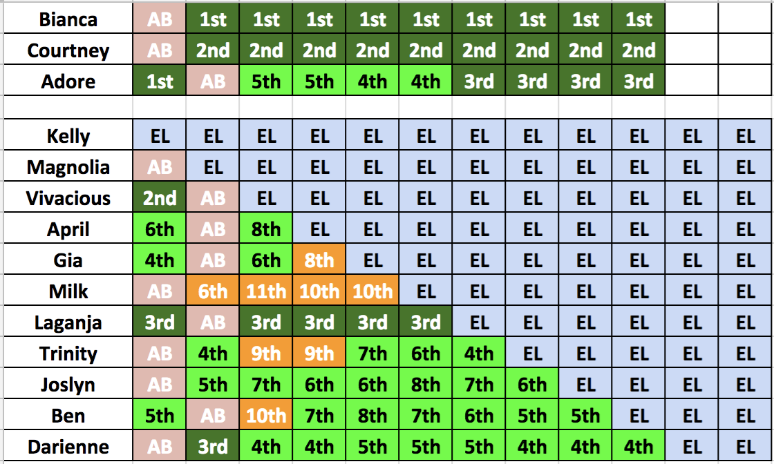 Darienne is too high in your rankings and Adore is way too low