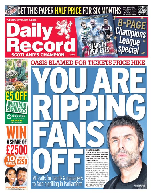 [Starmer has vowed to take action after Oasis fans were hit with vastly inflated ticket prices, the Daily Mirror reports.] ![]() |