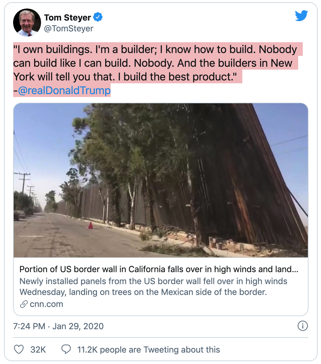 they need to do that Wall in Metal. And yes Mexicans can get over the Solid Wall with an extended Ladder made from wood or strong rope and metal. Last edited by arista; 28-07-2020 at 12:04 PM. |