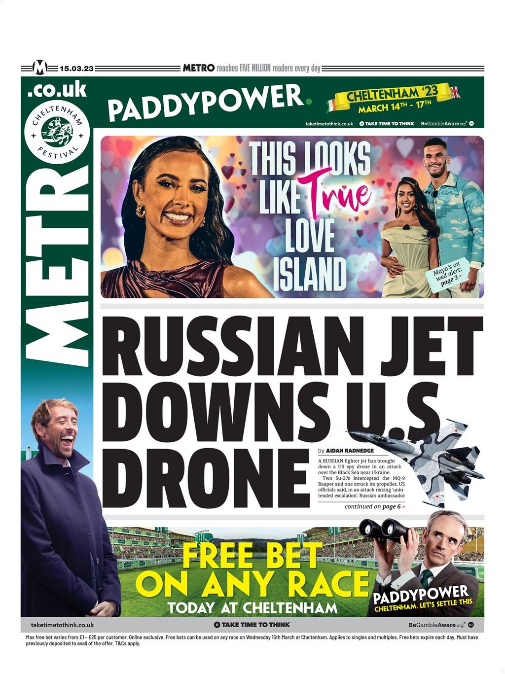 [A Russian fighter jet has collided with a US drone over the Black Sea, forcing the US Air Force to bring down its unmanned aircraft, the American military says. It says the drone was conducting a routine operation in international airspace when two Russian jets tried to intercept it. It says the "unsafe and unprofessional act by the Russians" nearly caused one of the fighter jets and the drone to crash.] https://www.bbc.co.uk/news/world-europe-64957792 https://news.sky.com/story/ukraine-w...apons-12541713 |