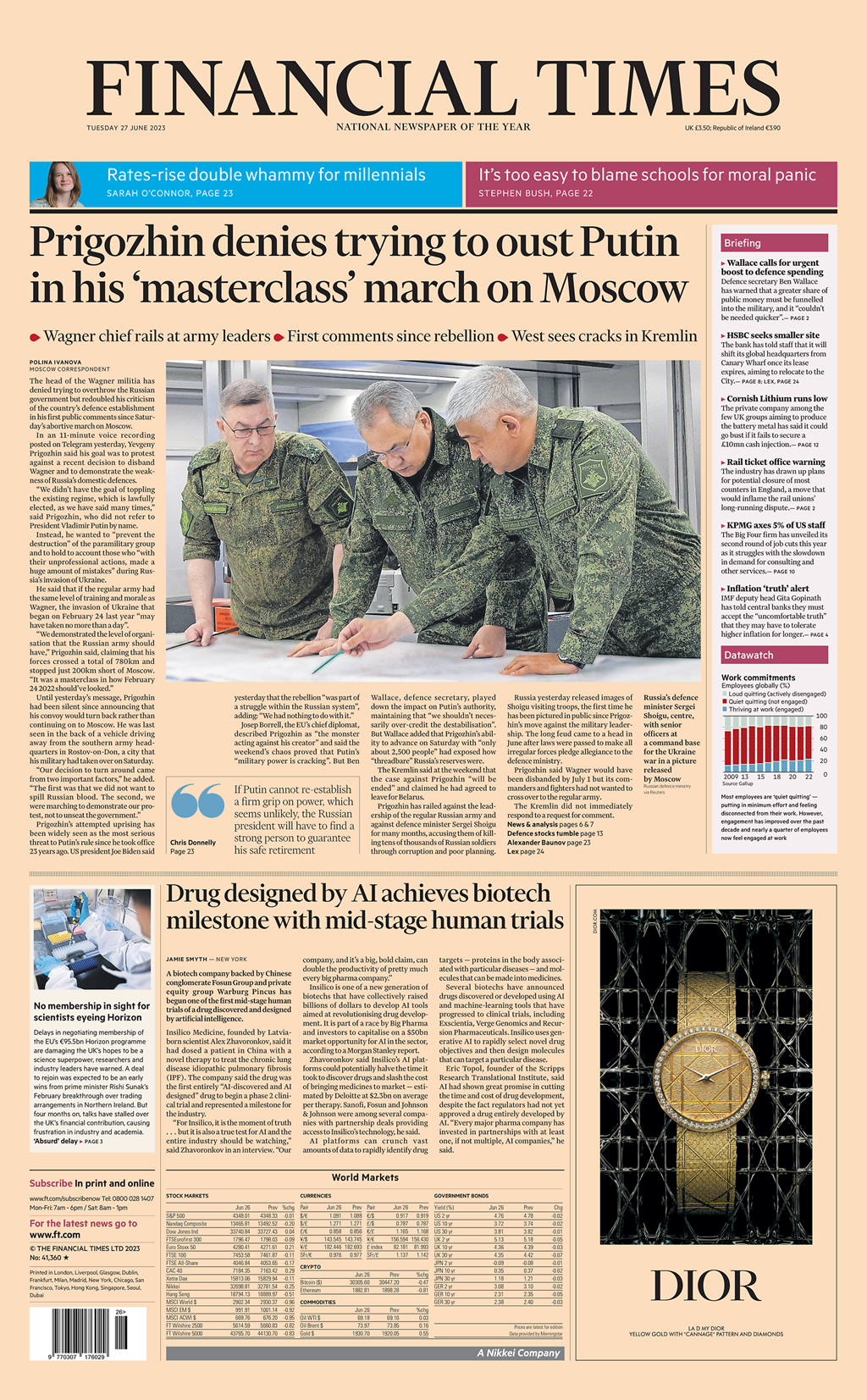 Yevgeny Prigozhin called off his advance on Moscow, according to UK security sources. |
