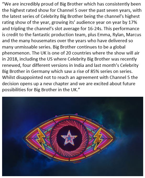 Statement re: Big Brother UK on Channel 5 pic.twitter.com/0A7JUVmij9