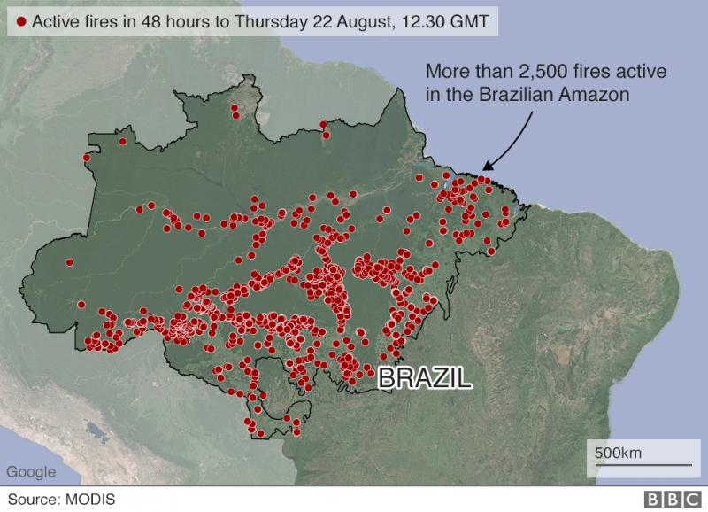Here's more info. Brazil has more intense fires this year, since 2010, but less than the mid-2000s.