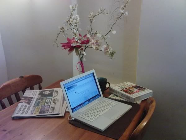 mostly i am just sat on the sofa with laptop my workstation is the sofa arm but at the mo am sat at my dinning table cos i am making jewellery at same time (plus its a good spot to be nosy out the window during the day