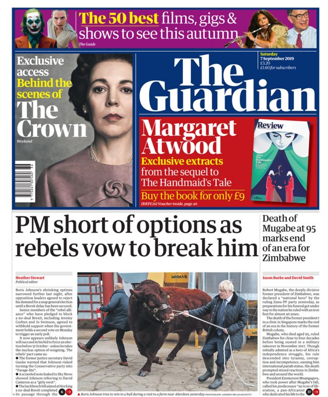 “A refusal in the face of that would amount to contempt of court, which could find that person in prison,” MacDonald told Sky News. “He won’t get any co-operation, apart from the fanatics around him … the attorney general won’t sit there quietly while this happens.” The Scottish Conservative MSP Adam Tomkins, a former law professor, said Johnson should resign rather than break the law by forcing through a no-deal Brexit. In a series of tweets, Tomkins said Johnson had only one option if he refused to ask for an extension: resign. “Irrespective of what we think about Brexit, or the PM, surely we can all agree on one fundamental principle: the government is bound to obey the law,” he said. The Guardian Lock him up!