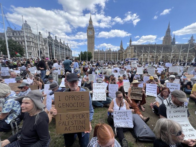 [Police have arrested 474 people at a demonstration in London in support of banned group Palestine Action. The Metropolitan Police said 466 protesters were arrested for supporting the group, five for assaults on police officers, two for public order offences, and one for a racially aggravated offence. Scores of people simultaneously unveiled handwritten signs with the message "I oppose genocide. I support Palestine Action" at the protest, organised by Defend Our Juries at Westminster's Parliament Square. The government proscribed the group in July under the Terrorism Act of 2000, making membership of or support for it a criminal offence, punishable by up to 14 years in prison. No officers were seriously injured, and the Met Police said the number of arrests was the largest made by the force on a single day in the last 10 years. Home Secretary Yvette Cooper thanked police for their response, while charity Amnesty International described the mass arrests as "deeply concerning". Footage from the square showed officers moving among the protesters, who were mainly seated on the ground, and speaking to them before leading them away. Protesters whose details could be confirmed during processing were bailed with conditions not to attend any further protest in support of Palestine Action. People who refused to give their details or whose identities could not be verified were taken into custody.] https://www.bbc.co.uk/news/articles/c8de6rq37v5o |