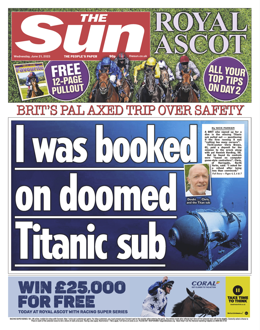 [A Briton who signed up for a dive in the missing Titanic sub told The Sun he pulled out questioning if the firm running the tour was "cutting too many corners".] ![]() |