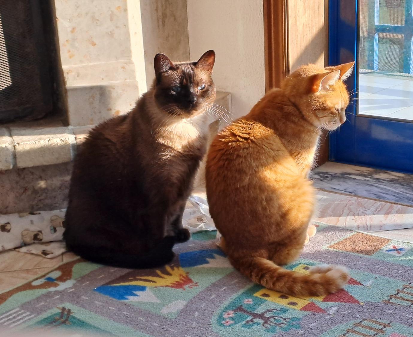 No, they are a year apart and even from different towns. The brown one is turning ten next month and the orange one is turning 9 in August!