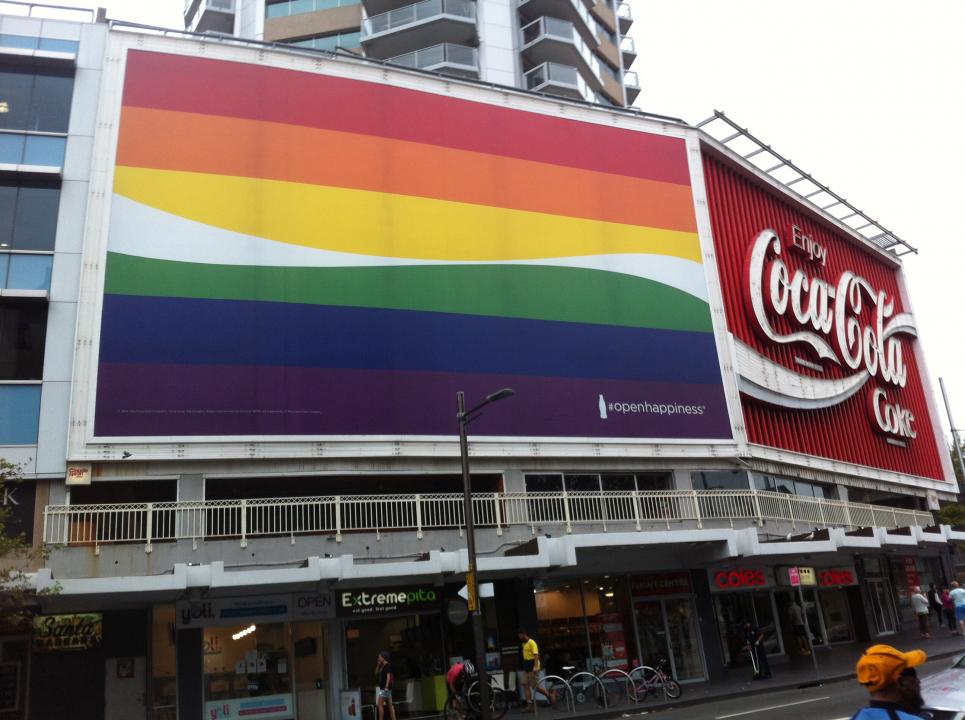 The kings cross coca-cola billboard (largest billboard in the Southern Hemisphere), usually featuring ugly sluts has been transformed! Bet it looks magnificent at night.
